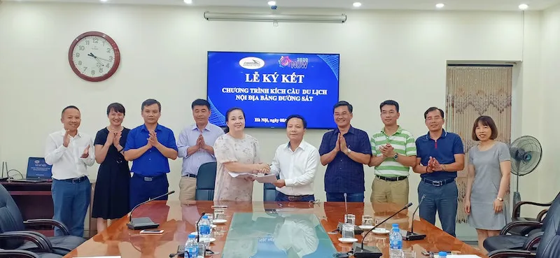 | An signing ceremony between Hanoi's tourism authorities and Hanoi Railway. Photo: Bao Du lich. |