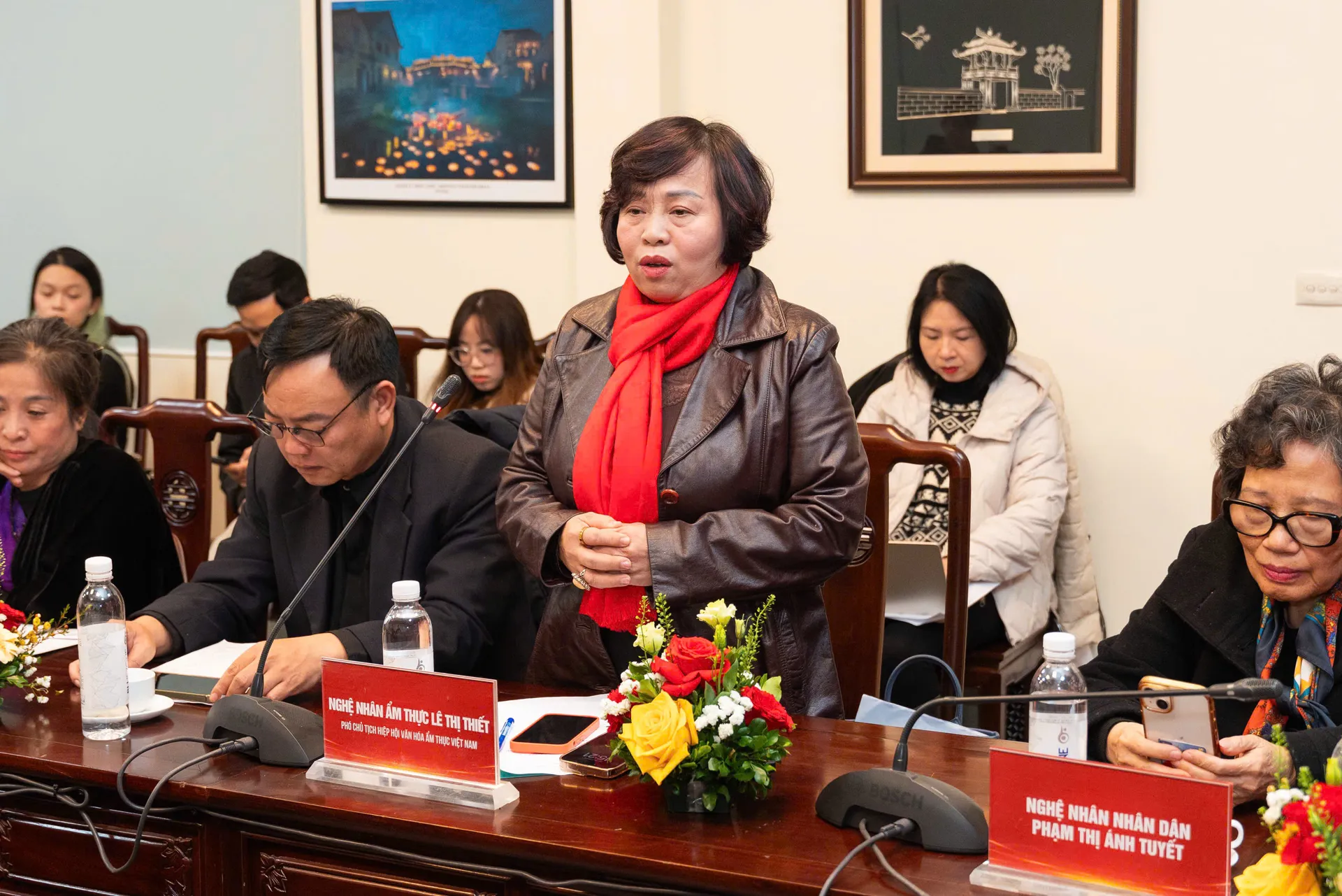 Culinary expert Le Thi Thiet shares insights on Happy Tet 2026 at the press briefing, highlighting the event’s rich celebration of Vietnamese New Year food culture.