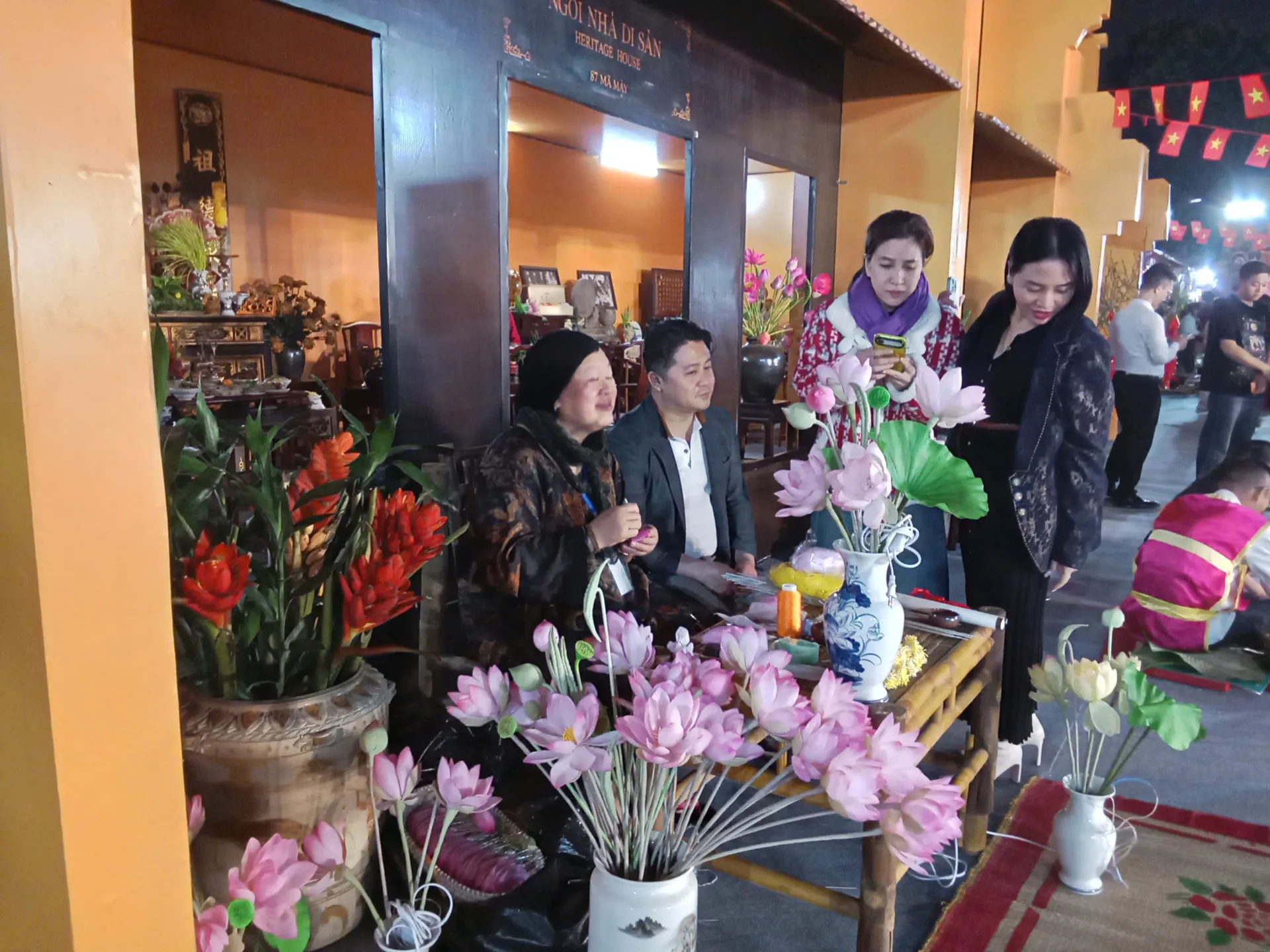 Tourists explore the traditional art of silk flower making from Hue at the festival.