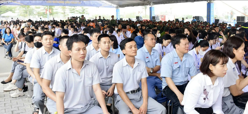 Workers at the launch of the Occupational Safety and Health Action Month held in April. Photos: Anh Kiet/The Hanoi Times