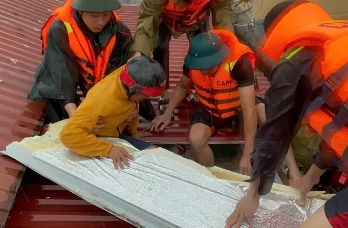 Many people in Thai Nguyen run to rooftops to avoid floods. Photo: Thai Nguyen Newspaper