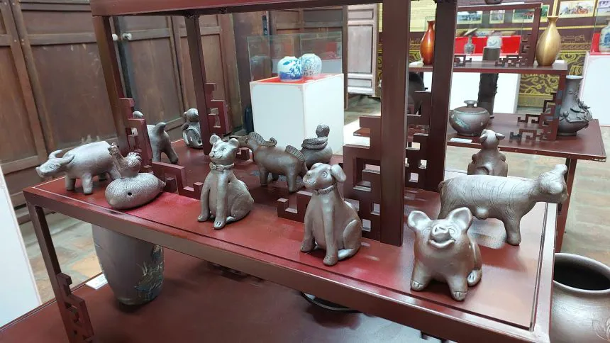 A collection of clay whistles of Phuoc Tich Village which are made in the shape of 12 zodiac animals.