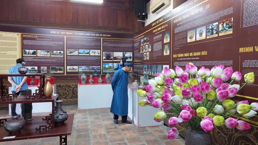 The display highlights the meeting point of court culture and folk traditions, with Bat Trang pottery from Thang Long and Phuoc Tich pottery from Phu Xuan as its central focus.