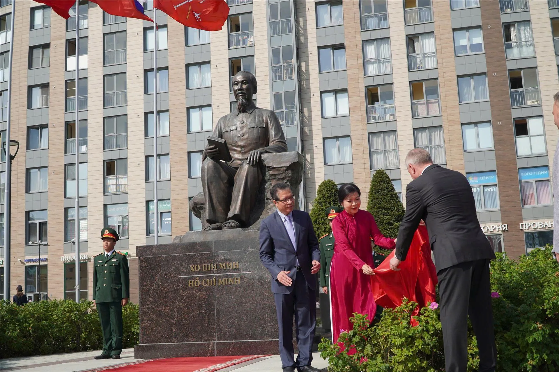 Madam Ngo Phuong Ly and St. Petersburg Governor A. Beglov unveil the nameplate at the inauguration of Ho Chi Minh Square.