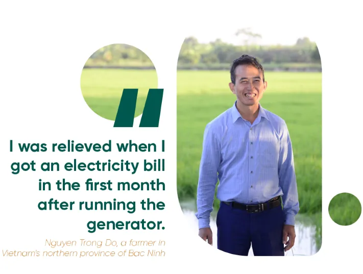 Six months after installing a biogas generator, Nguyen Trong Do, a farmer in Vietnam’s northern province of Bac Ninh is now happy with his reduced monthly electricity bills and no longer worried about the environmental hazards emitted from his farm.