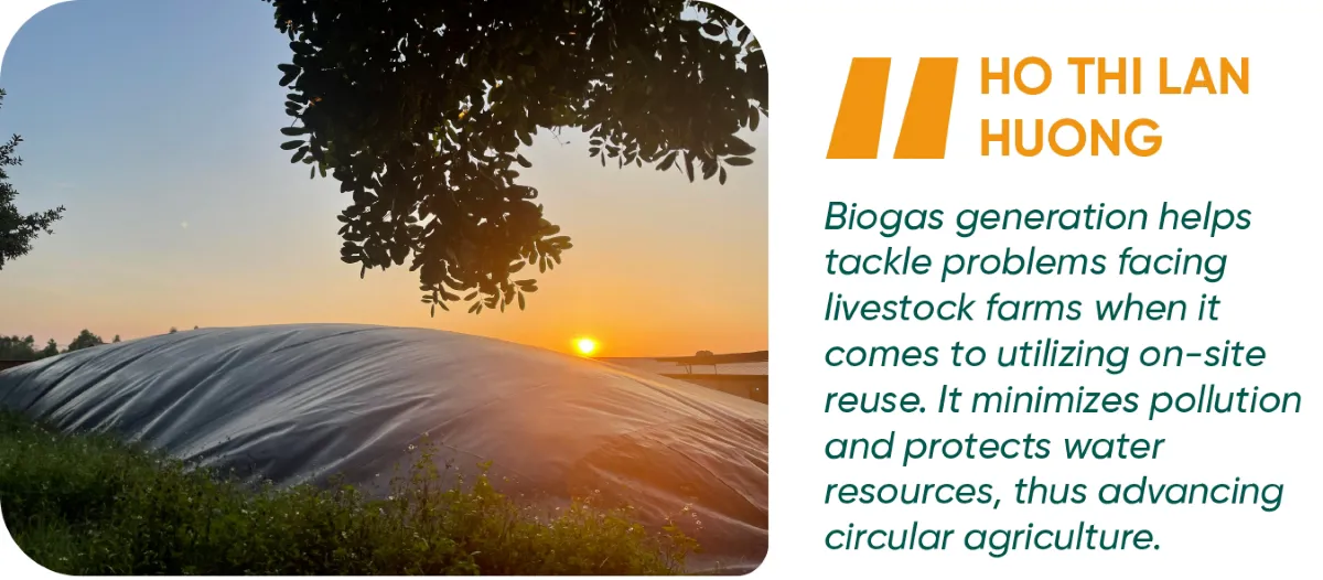 Commenting on the system, Ho Thi Lan Huong said it helps tackle problems facing livestock farms when it comes to utilizing biogas for on-site reuse, where waste and residues from one process are used as reusable resources in another cycle. It minimizes pollution and protects water resources, thus advancing circular agriculture.