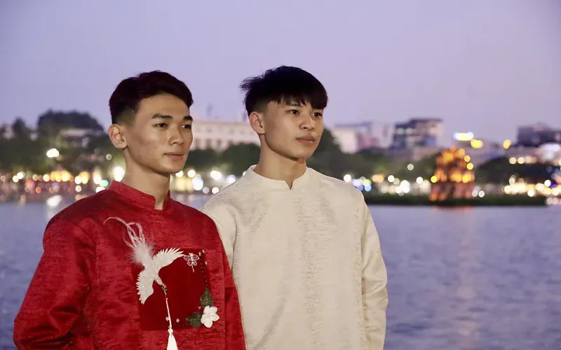 Quang Huy (in red), a 24-year-old IT staff from Vietnam’s central province of Nghe An, chooses traveling to iconic spots in Hanoi to celebrate the Lunar New Year with his close friend. Photo courtesy of Huy
