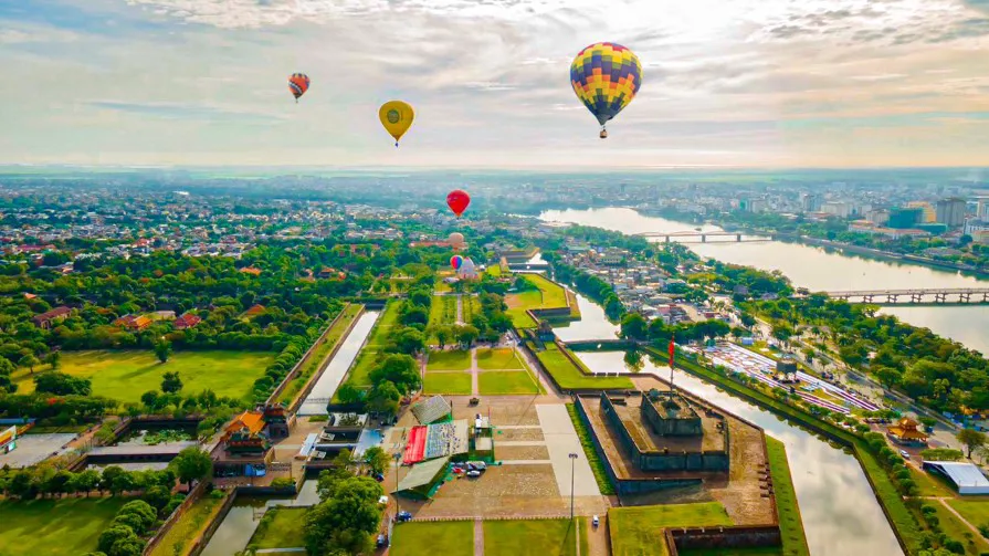 The ancient capital of Hue plan to host a large influx of tourists this month to experience the feeling of enjoying the panoramic view of the ancient capital from hot air balloons flying at an altitude of 500m.