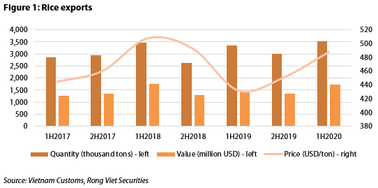 In the first half of this year, rice export value jumped 18.6% year-on-year to US$1.71 billion.