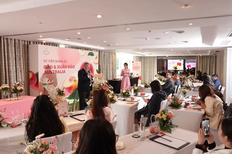 According to Australian Trade and Investment Commissioner Chris Morley, this is the second Australian peach crop to be showcased in Vietnam. "We are very pleased to announce that the Australian summer peach crop has reached a bumper season. And the first freshest peaches of the season have been shipped to Vietnam to serve Vietnamese diners," he said.