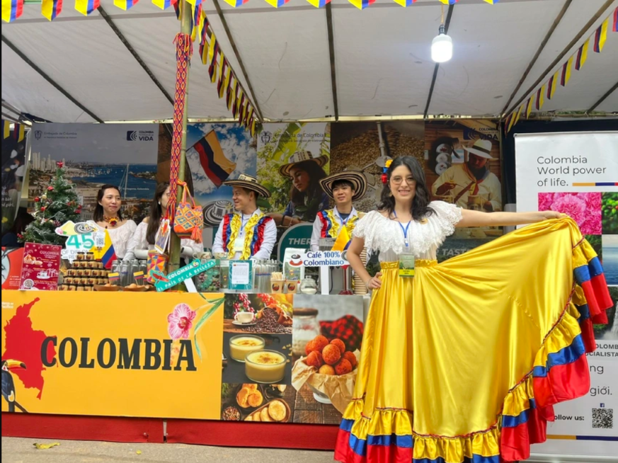 | Brilliant colors of Colombian booth. Photo: Minh Nhi/The Hanoi Times |
