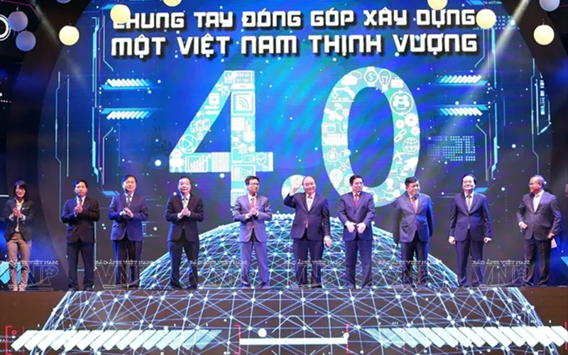 | PM Nguyen Xuan Phuc and delegates announce the connection of the Vietnam Innovation Network 2018. Photo: VNA |