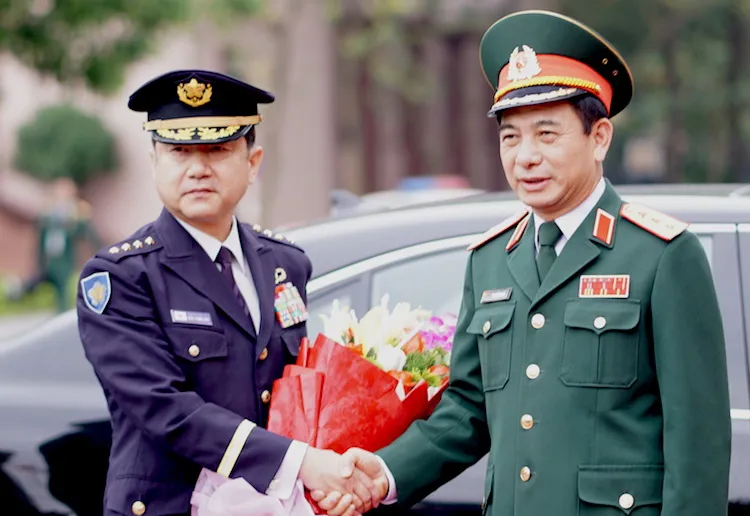 | Koji Yamazaki, Chief of Staff, Joint Staff of the Japan Self-Defense Forces, and Senior Lieutenant General Phan Van Giang, Vietnam’s Deputy Defense Minister in Hanoi. Photo: VNExpress |