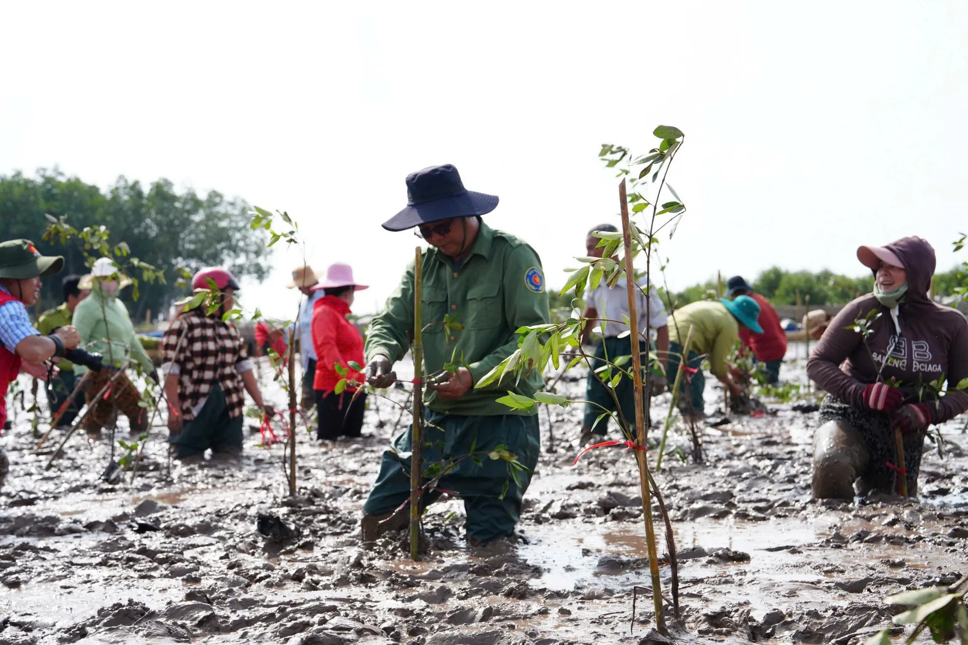 The planting is part of the nationwide campaign “For a Green Vietnam,” aimed at promoting mangrove restoration and sustainable development in response to climate change.