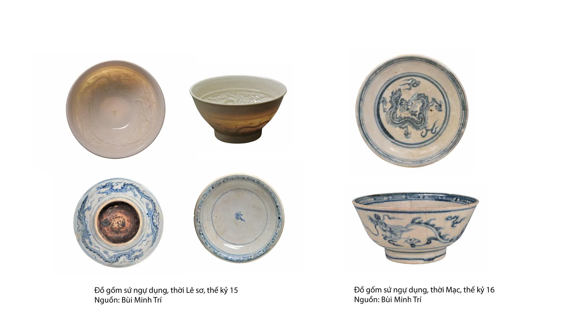 Artifacts from the Le Dynasty include many national treasures, such as collections of blue-and-white porcelain adorned with dragon motifs, thin white porcelain bowls with embossed dragon designs, white porcelain vases decorated with dragons and bronze cannons.