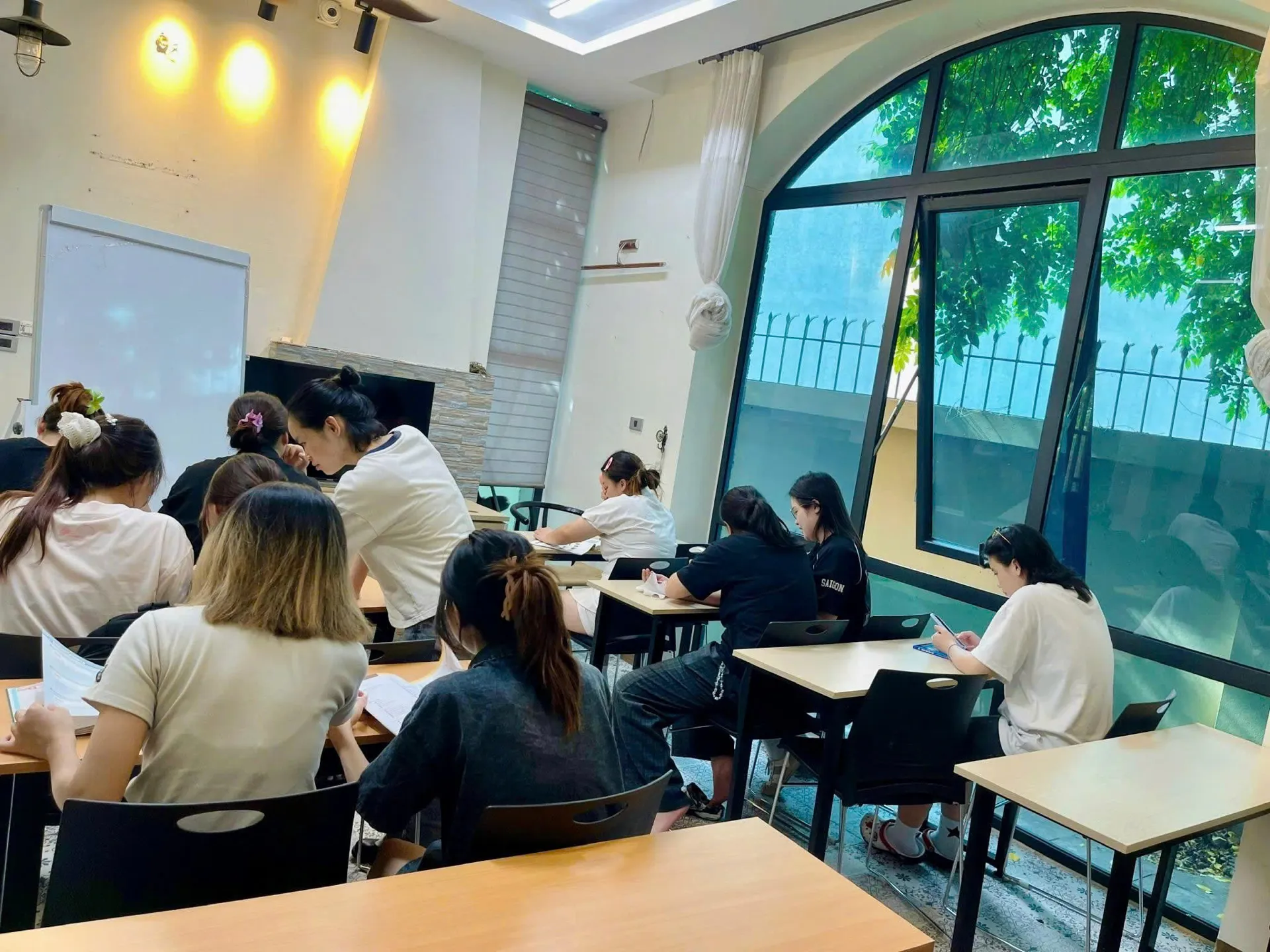 Students take an exam at Duy Thi Hoa’s TOPIK class.