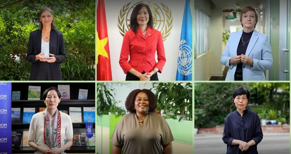 | From left: UNDP Resident Representative Vietnam Ramla Khalidi, UN Resident Coordinator for Vietnam Pauline Tamesis, UNICEF Representative in Vietnam Rana Flowers, IOM Vietnam Chief of Mission Mihyung Park, Head of a.i. UN Women in Vietnam Caroline T. Nyamayemombe, and Nguyen Thi Bich Hue from UNAIDS Vietnam |
