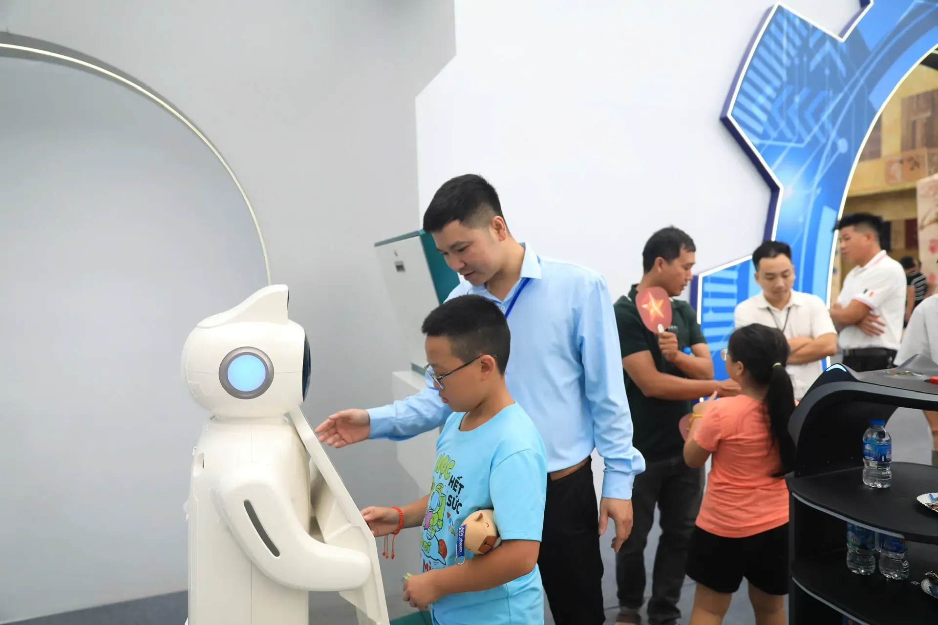 The AI and technology zone at the exhibition captivates young visitors. Photo: Thien Quang/The Hanoi Times