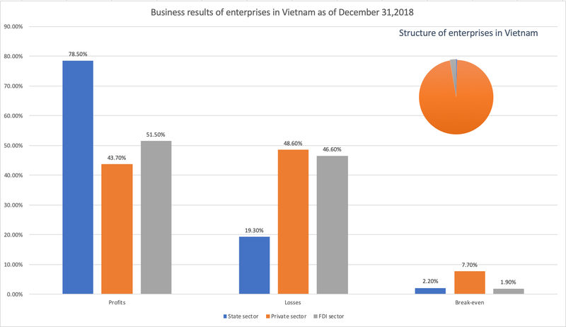 The private sector made up 97% of total enterprises nationwide reporting business results as of end-2018, with 43.7% of the sector generating profits and 48.6% suffering losses.
