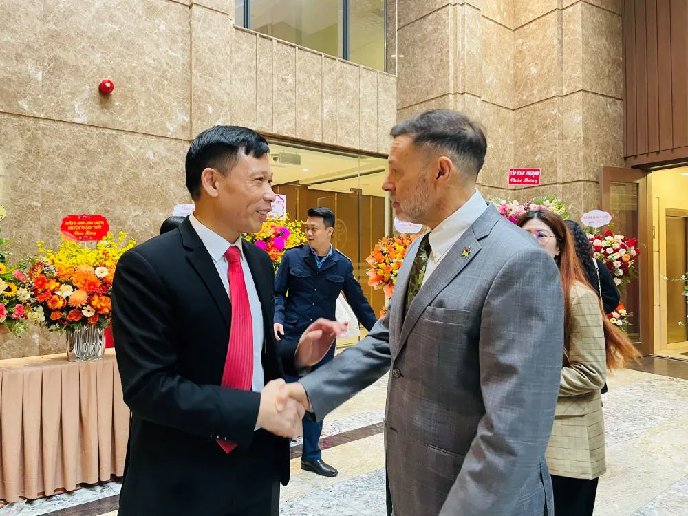 | Editor-in-chief Nguyen Thanh Loi welcomes Australian Ambassador to Vietnam Andrew Goledzinowski. |