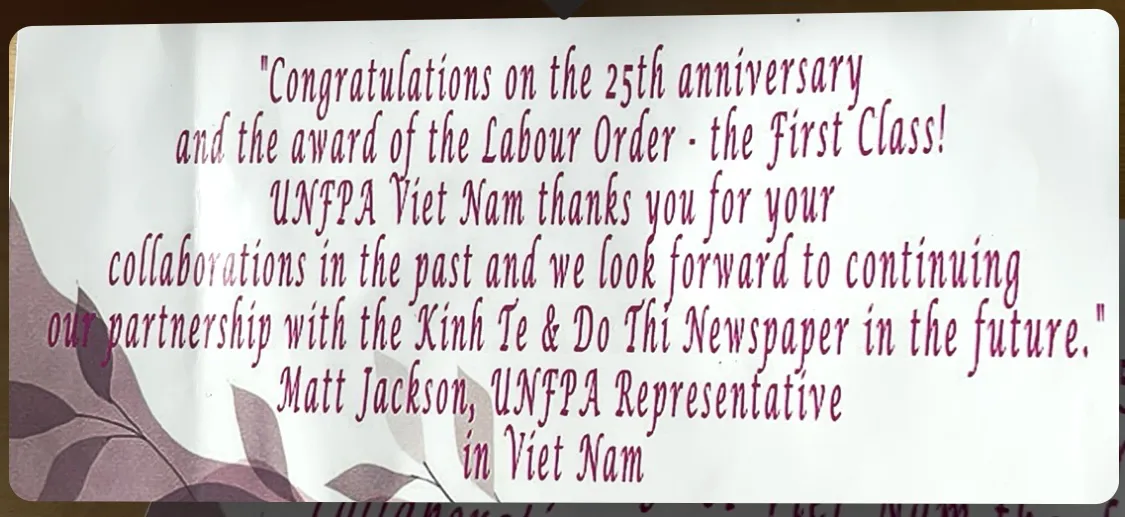 The Economic & Urban Newspaper, under the Hanoi People's Committee, would like to thank leaders and our esteemed readers for sending us congratulatory messages and flowers on the 25th anniversary (January 1, 1999 – 2024) and for attending the award ceremony of the Labor Order - 1st Class.