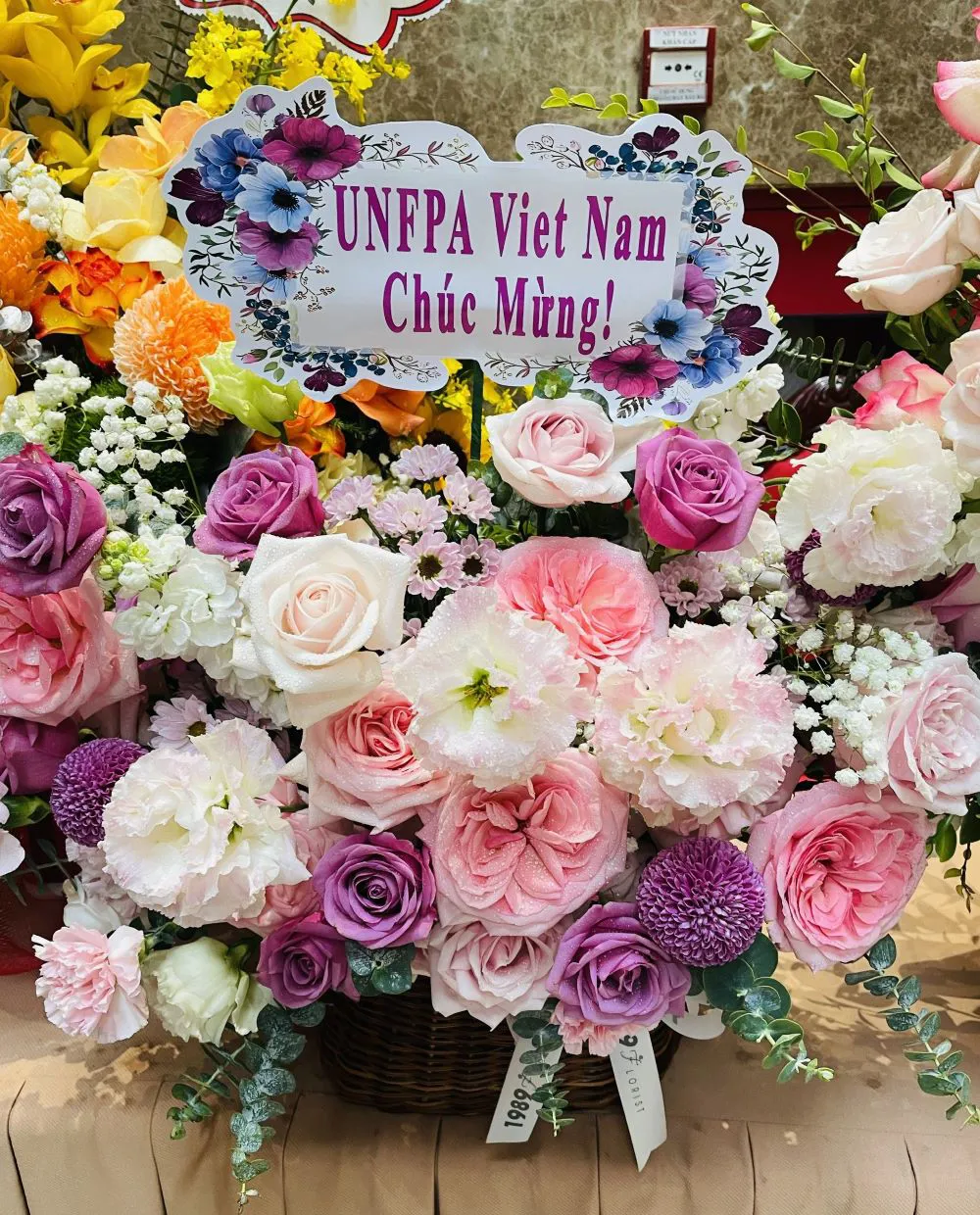 We are honored to get flower baskets and congratulatory messages sent by Matt Jackson, the United Nations Population Fund (UNFPA) Representative in Vietnam, the United Nations Development Program (UNDP) Vietnam, the Embassy of Norway in Vietnam, and the Embassy of Denmark in Vietnam.