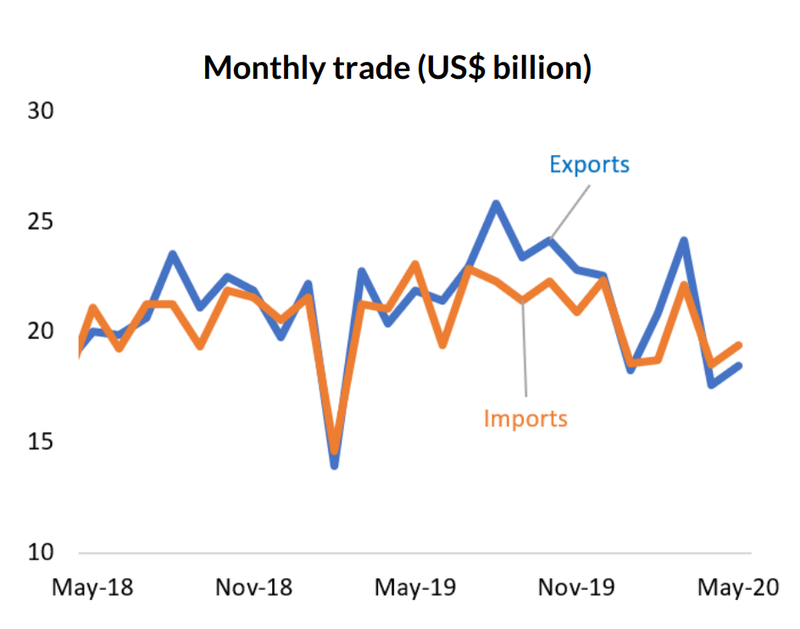 Although the value of Vietnam’s merchandise exports increased by about 5% between April and May, it was 5.5% lower than a year ago due to weaker external demand and some possible disruptions of global supply chains. The report suggested the foreign sector has started to get hurt by weaker global demand.