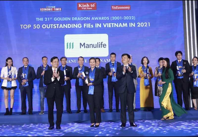 The Golden Dragon Awards recognize foreign-invested enterprises that have provided significant contributions to the development of Vietnam’s economy throughout the year. Organized by the Vietnam Economics Times Group, this is the twelfth time Manulife Vietnam has been honored as part of the annual event.