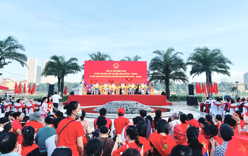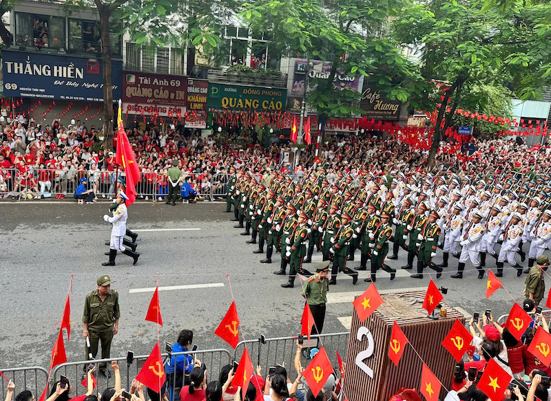 The state ceremony commenced at 6:30 AM with a torch relay, flag-raising, the national anthem, and a 21-gun salute from My Dinh Stadium, which echoed across Hanoi.