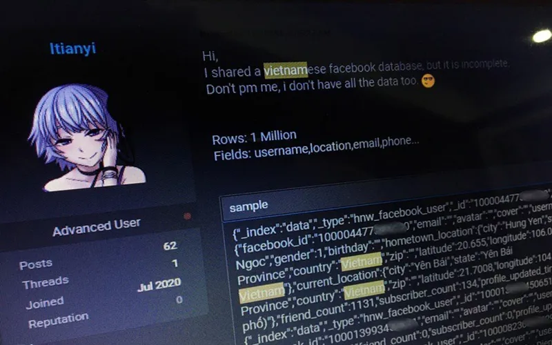 It is known that the R. Forum is where hackers operate, post, exchange, buy and sell stolen data. Earlier in March, personal information of more than 41 million Vietnamese Facebook users was distributed on this forum.
