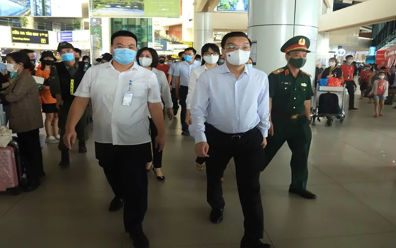 Hanoi mayor inspects Covid-19 prevention operations in Noi Bai International Airport. Photo: Kinhtedothi.vn |