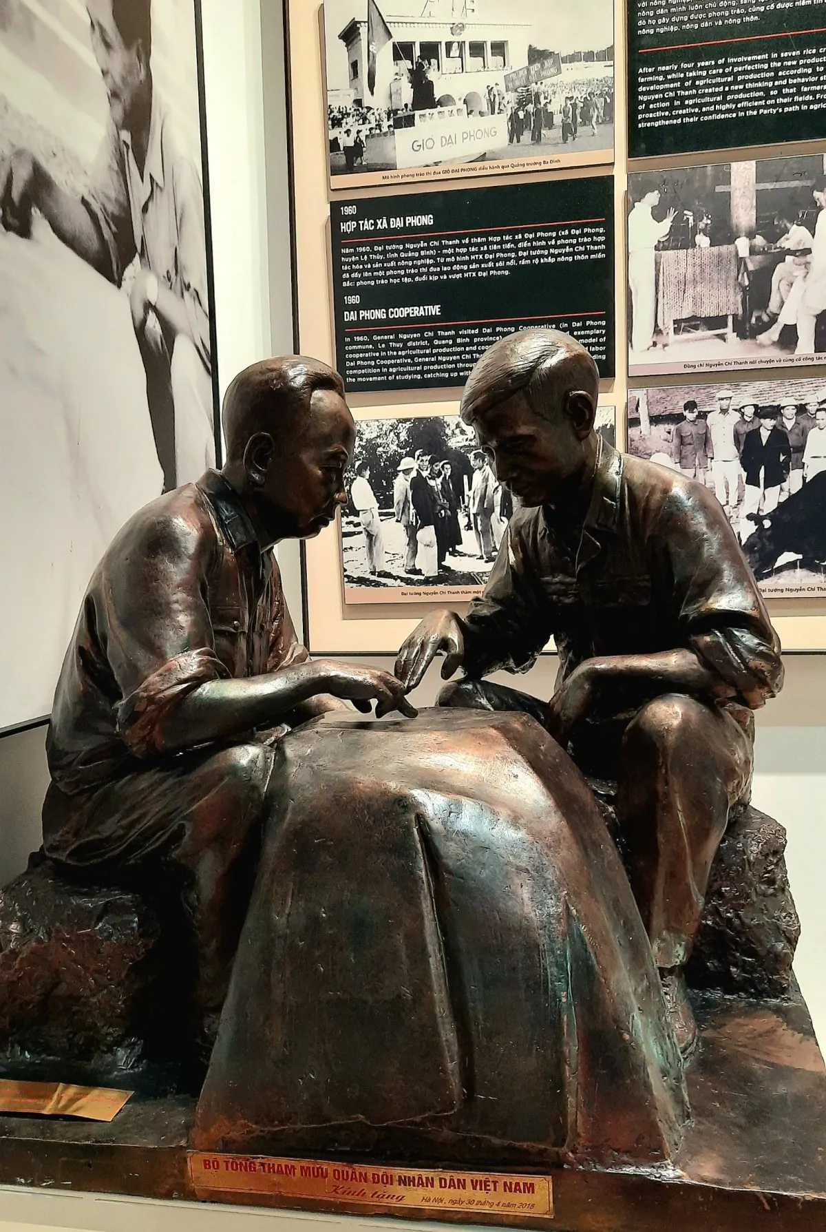 | The bronze statue of two great generals of Vietnam during the American War (1954-1975): Vo Nguyen Giap (left) and Nguyen Chi Thanh (right) are on display at the General Nguyen Chi Thanh Museum in Hanoi. Photo: VOV |