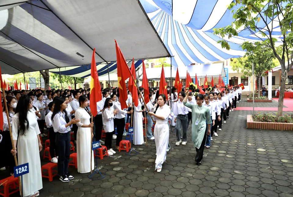 | High school students in Hanoi celebrate the opening of the 2023-2024 school year. Photo: Ngoc Tu/The Hanoi Times |