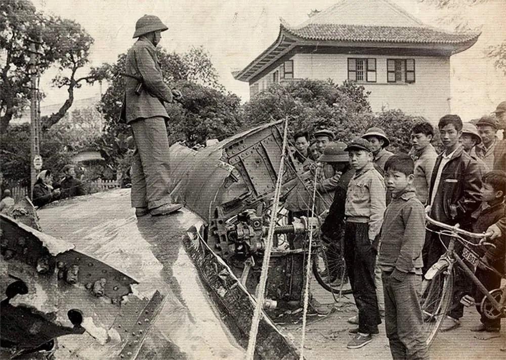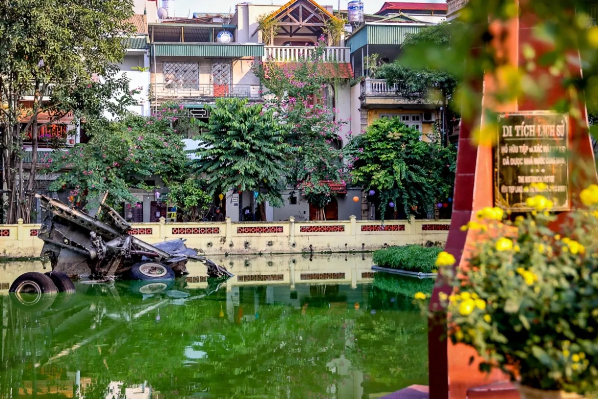After being struck by a missile, the B-52 broke apart mid-air and crashed into Ngoc Ha Flower Village. Most of the fuselage and wings landed in Huu Tiep Lake in today's Ngoc Ha Ward. Photo: Huy Pham/ The Hanoi Times