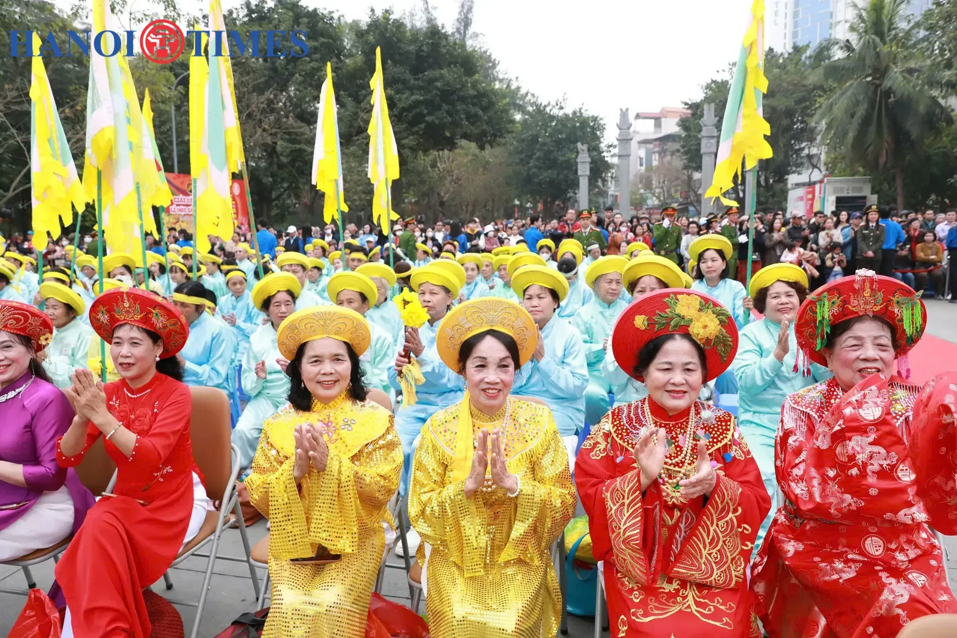 The ritual team at the Go Dong Da festival is composed entirely of elderly residents from the Dong Da Ward.