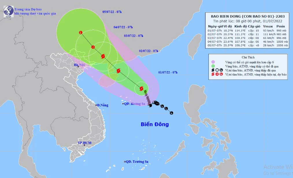 The border guard command said on July 1 that it had warned nearly 60,000 ships about the storm. Vietnam’s National Steering Committee for Natural Disaster Prevention and Control has asked authorities in the coastal localities from the northern Quang Ninh Province to the south-central Binh Dinh Province to proactively take preventive measures.