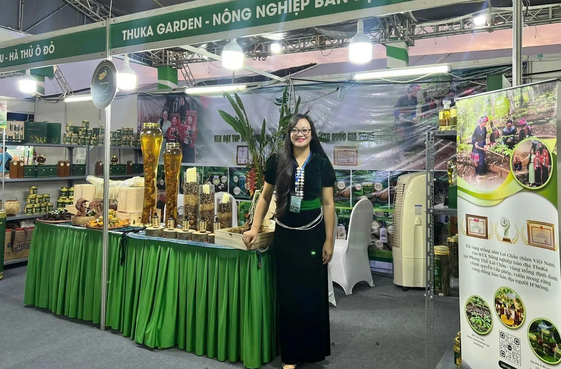 Tang Thi Thanh from Lai Chau Province with diversified products made in Thuka Garden which are exhibited at the fair.