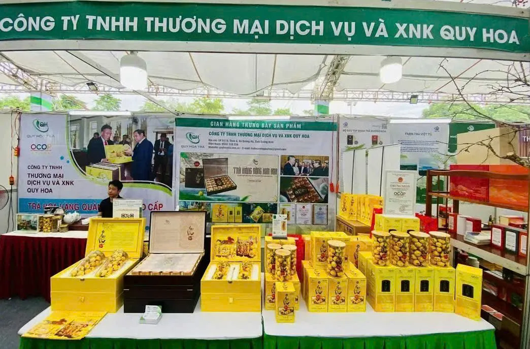 Quang Ninh Province's golden flower tea products are displayed at Vietnam OCOPEX 2025.