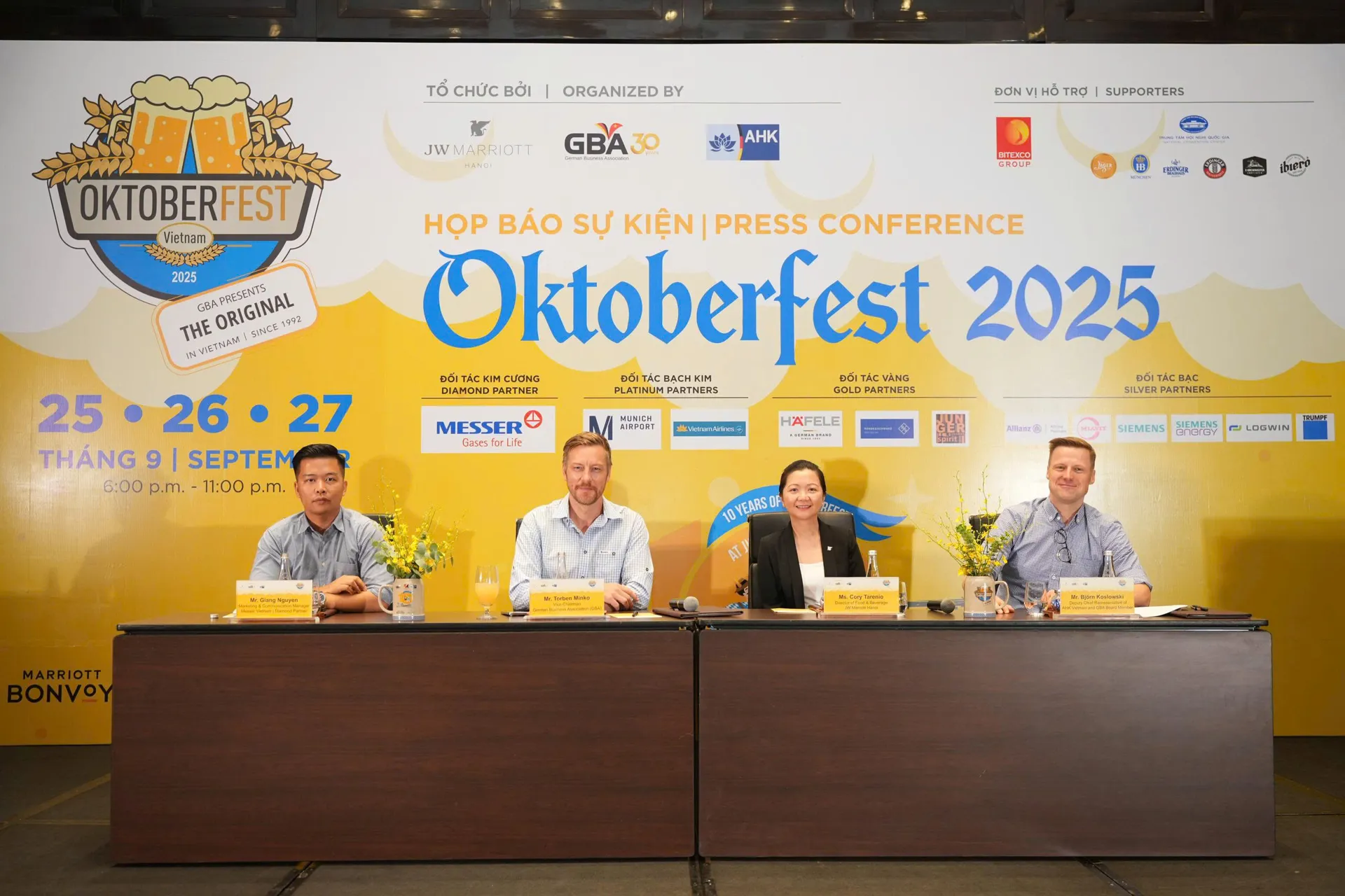 Organized by the GBA in collaboration with the German Industry and Commerce in Vietnam (AHK), Oktoberfest 2025 will take place in three major cities, including Hanoi from September 25 to 27 at JW Marriott Hotel, Danang on October 3 at Furama Resort, and Ho Chi Minh City from October 9 to 11 at Hotel Nikko Saigon.