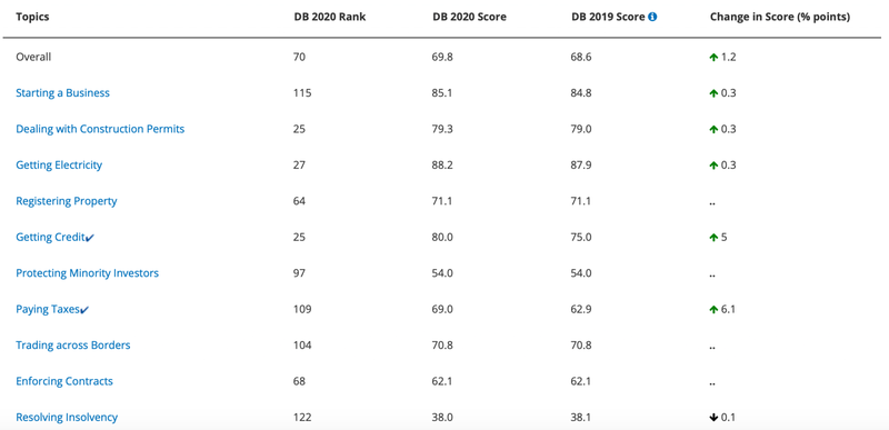 | Vietnam's detailed scores. Source: World Bank's Doing Business 2020 report. |