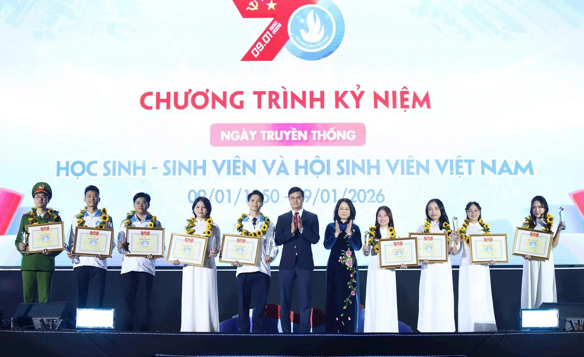 At the ceremony, 580 individuals and representatives from universities and colleges across the country received the “Five-Good Student” title.