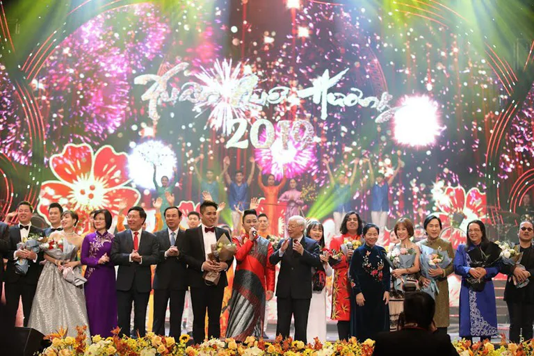 Secretary General of the Communist Party of Vietnam and State President Nguyen Phu Trong and other leaders attend Tet holiday 2019. Photo: Xuan Que Huong |
