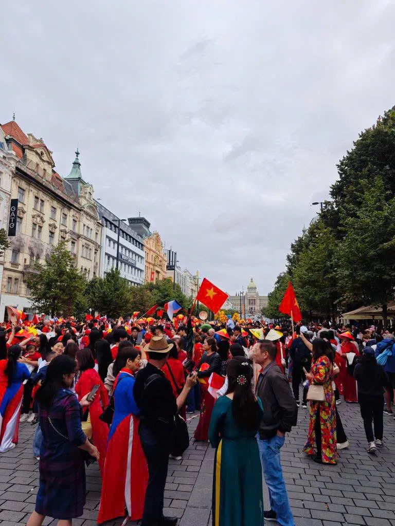Thousands of kilometers away in Prague, Czech Republic, the scene was just as moving. Hung Nguyen, visiting Europe, was surprised to see Vietnamese residents gather in a public square.