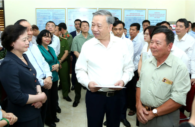 Addressing officials in Phuc Thinh Commune and Tay Ho Ward, General Secretary To Lam called for a strong sense of responsibility, political courage, professional ethics, intelligence, for and each cadre and civil servant to lead in transforming governance thinking, making public service effectiveness the highest priority.