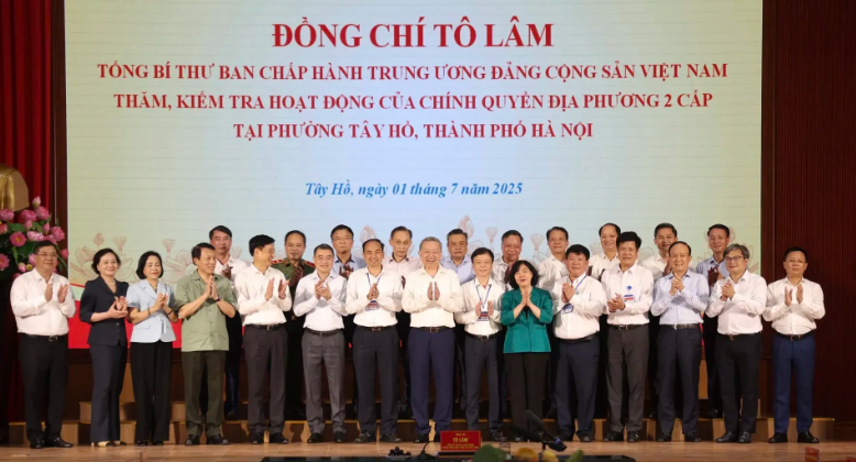 General Secretary of the Communist Party of Vietnam To Lam shared this view on July 1 during an inspection of Hanoi’s two-tier local government model, where he reviewed operations at the commune and ward levels in Phuc Thinh Commune and Tay Ho Ward.