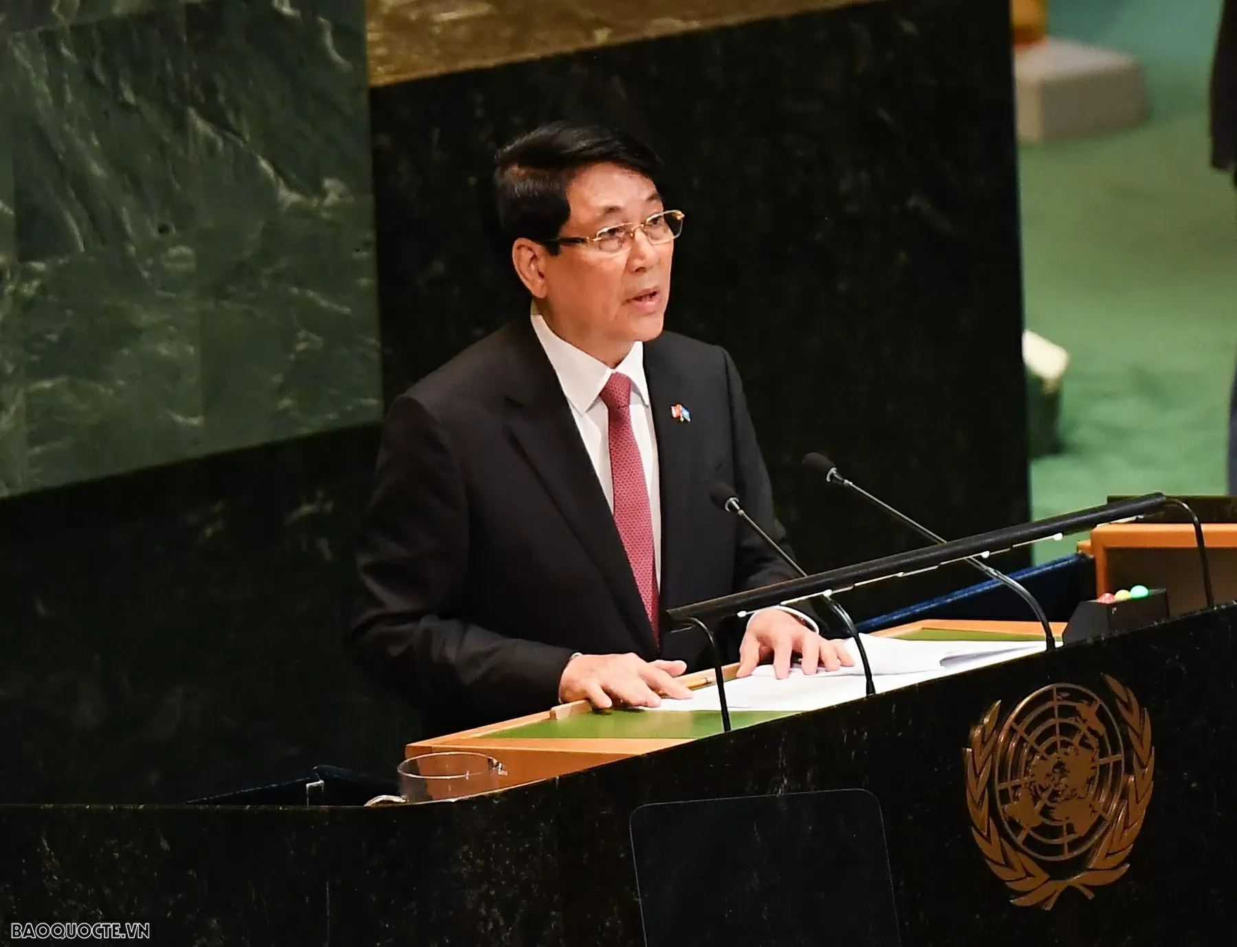 Vietnam’s President Luong Cuong speaks at the United Nations (UN) Headquarters on September 23. Photos: baoquocte.vn