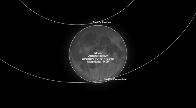 This eclipse is not a "blood moon" as it will not turn red. Instead, the moon will dim slightly as it passes through the outer part of the Earth's shadow - called the penumbra.