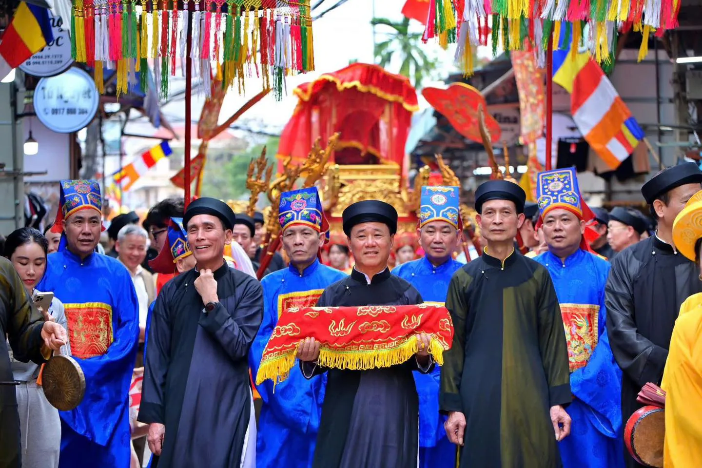 The Giong Festival, held from the 7th to the 9th day of the fourth lunar month (May 18-20, 2026), remains one of northern Vietnam’s most distinctive cultural events. Visitors can observe ceremonial water processions, victory parades, dragon horse cart displays, flag dances and army feasts. Performers portraying flag officers, Shang invaders, junior scouts, militia forces, standing army soldiers and dragon whip officers recreate the legendary battle scenes with striking clarity.
