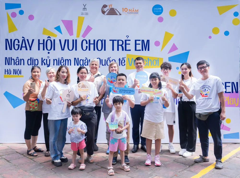 | Representatives participate in the play day, including those from UNICEF, the Culture and Science Center of Van Mieu, and Think Playground. |
