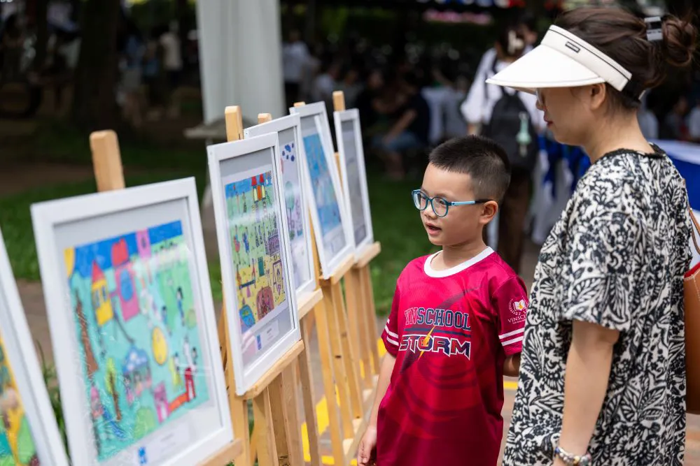 The event displayed 31 vibrant paintings selected from more than 8,000 submissions in a UNICEF-organized painting contest for children aged 6-15 to envision their ideal inclusive and eco-friendly playground.